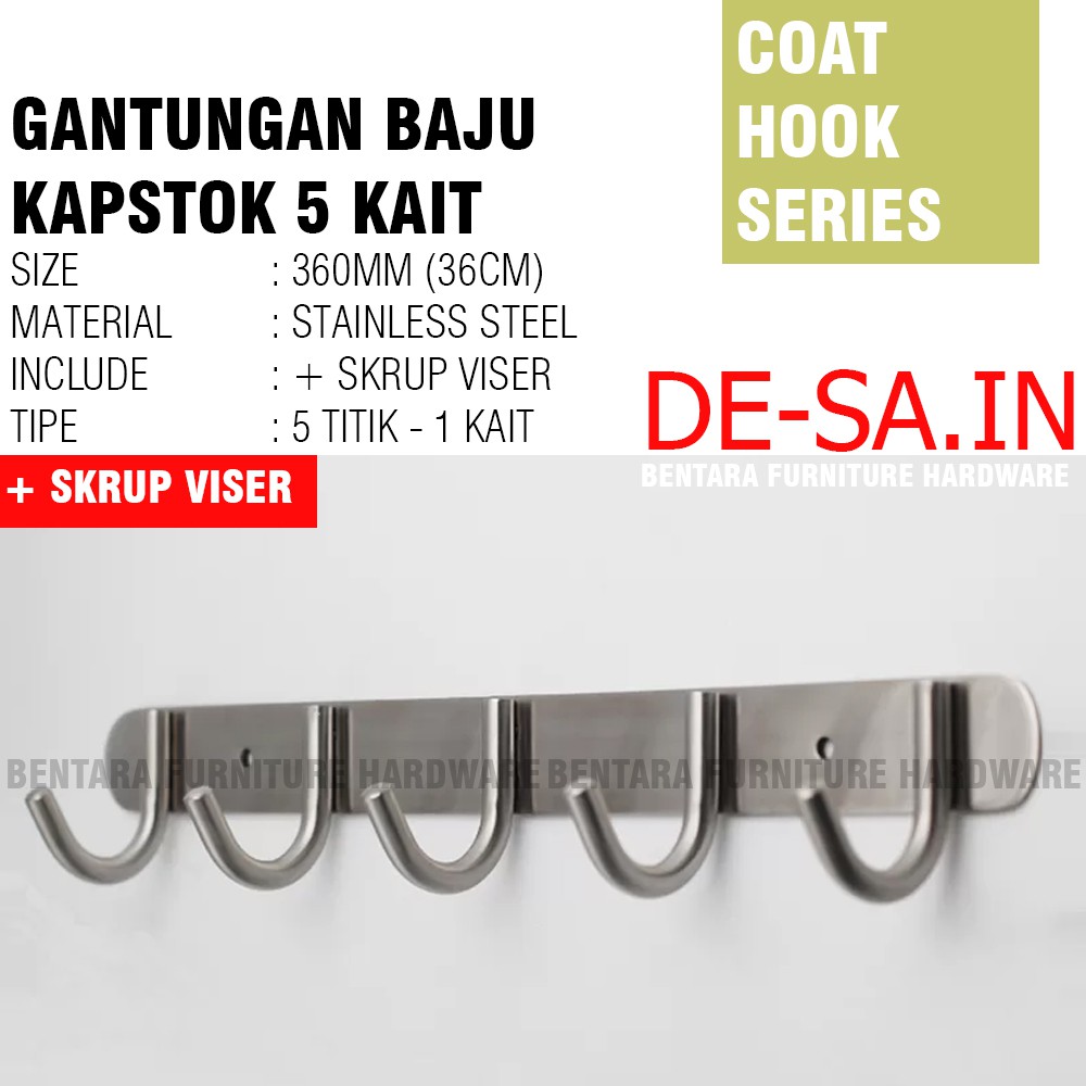 Berbahan stainless tebal 5 pcs ( 10 kait) panjang 47,5 cm.
